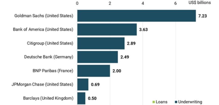 Goldman Sachs è di gran lunga la più grande istituzione quotata, avendo sottoscritto più di 7 miliardi di dollari in “obbligazioni di guerra” israeliane dall’inizio della guerra tra Israele e Gaza. Le altre istituzioni finanziarie individuate dall’indagine sono Bank of America, Deutsche Bank, BNP Paribas, Citi, Barclays e JPMorgan Chase.