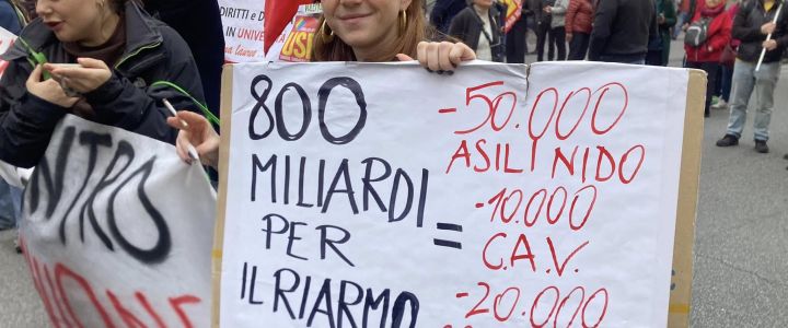 5) Stato sociale e non stato di guerra. Vogliamo la forte riduzione e non l’aumento delle spese militari. Vogliamo la fine delle politiche di austerità e non a favore dell’economia di guerra, ma per la sanità pubblica, la scuola e la formazione, le case, i diritti sociali. Vogliamo la fine della guerra contro il lavoro condotta nel nome del profitto e della competitività a tutti i costi, che oggi ci sta portando alla guerra vera e propria. Vogliamo la redistribuzione della ricchezza tra le classi sociali e tra i popoli e la fine del dominio liberista sull’economia e sulla società.