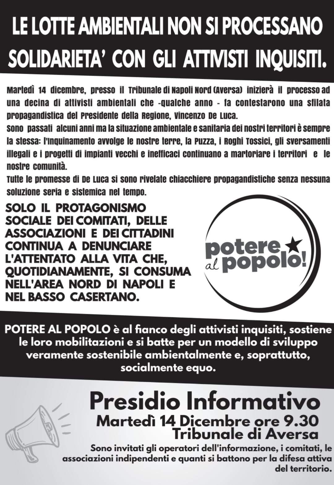 Martedi 14 dicembre, ore 9.30 presidio di solidarietà al Tribunale di Aversa