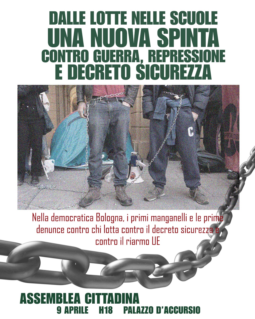 Per tutto questo ci vediamo mercoledì 9 aprile a Palazzo D’Accursio per un’assemblea cittadina, e invitiamo tutte le persone che sono state solidali con le studentesse e gli studenti in questi giorni per discutere e opporsi alla repressione e al clima di guerra che sta montando.
