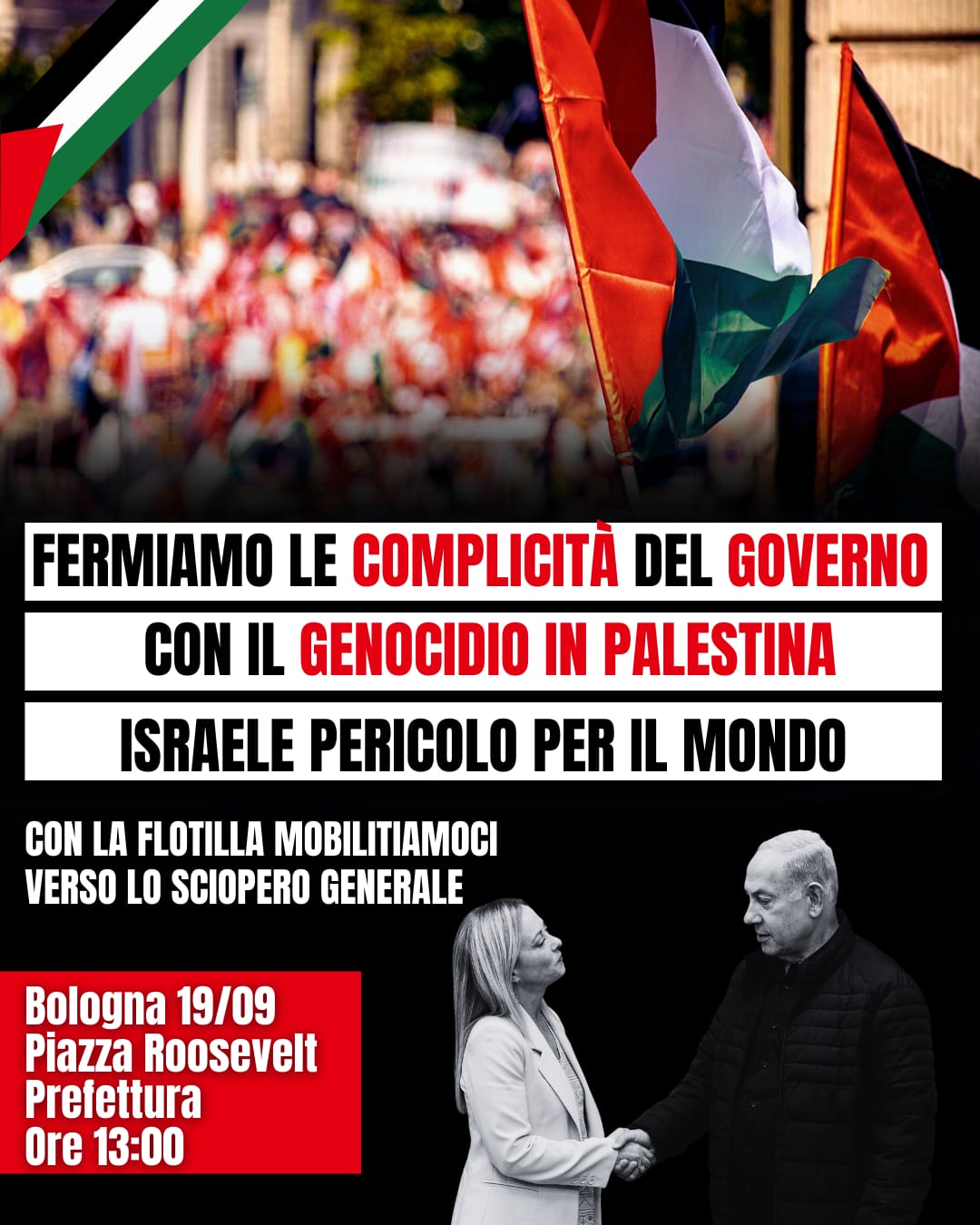 Lo abbiamo detto e lo ribadiamo: se non si ferma il genocidio in Palestina, se attaccheranno la Flotilla, bloccheremo tutto.