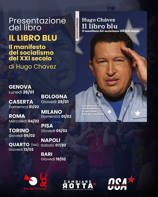Il Libro Blu di Hugo Chavez. Calendario delle presentazioni nelle città. Prima tappa Genova