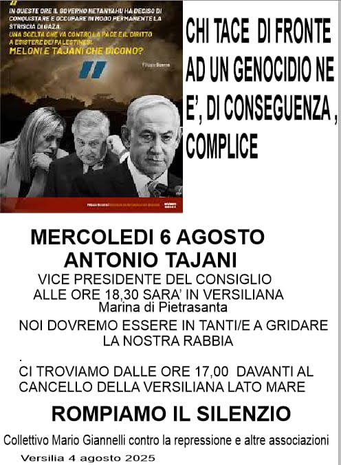 Marina di Pietrasanta. Rompiamo il silenzio sul genocidio!