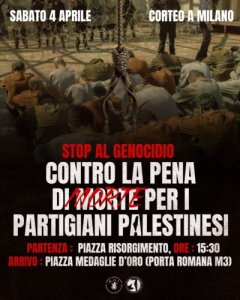 Milano. Corteo contro la pena di morte per i partigiani palestinesi