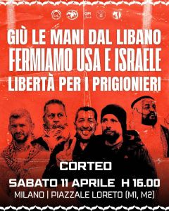 Milano. Corteo: fermiamo Usa e Israele, giù le mani dal Libano, libertà per i prigionieri palestinesi