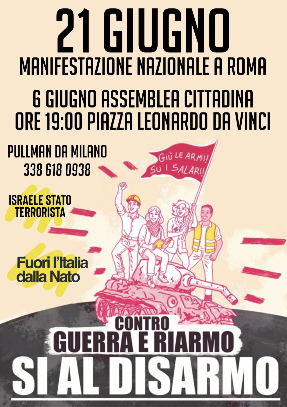 Manifestazione nazionale a Roma 21 di giugno (pullman da Milano 3386180938)