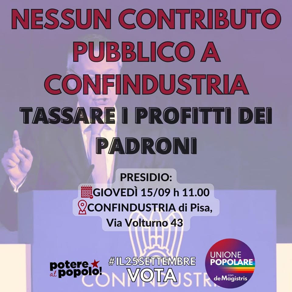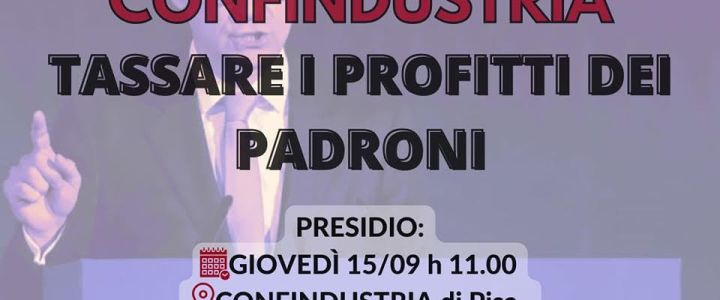 Giovedì 15 settembre ore 11.00 presidio a Confindustria di Pisa, Via Volturno 43