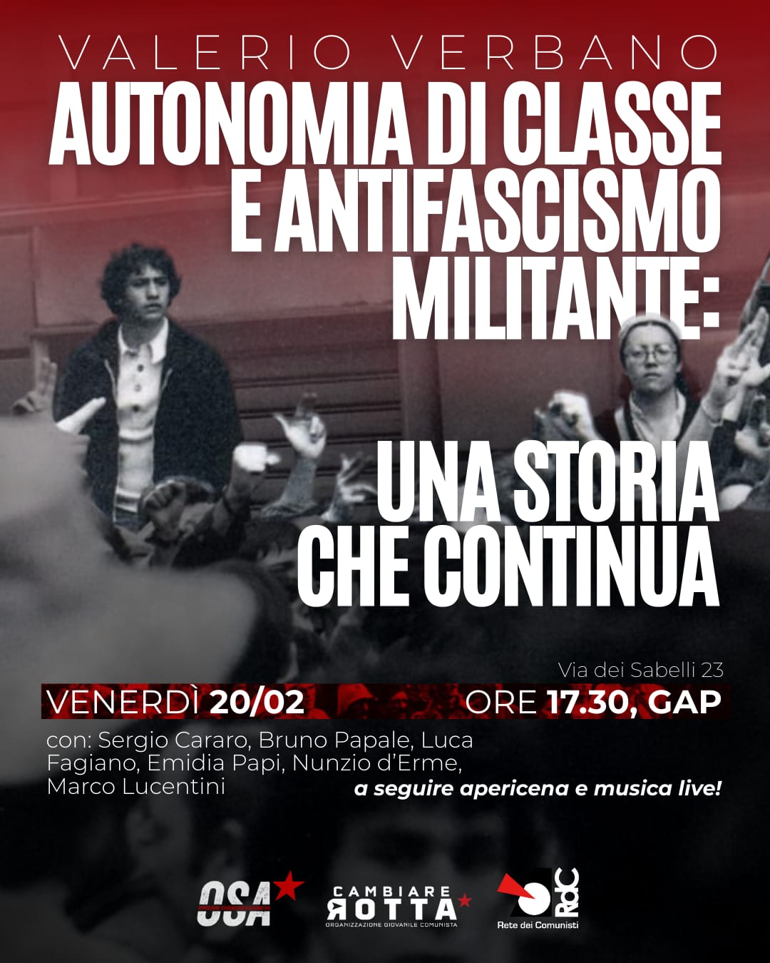 Appuntamento venerdì 20 febbraio, ore 17:30, Circolo GAP (via dei Sabelli, 23 – Roma)
