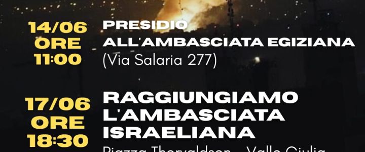 📌 Martedì 17 giugno alle 18:30 per raggiungere l’ambasciata israeliana (Piazza Thorvaldsen – Valle Giulia)