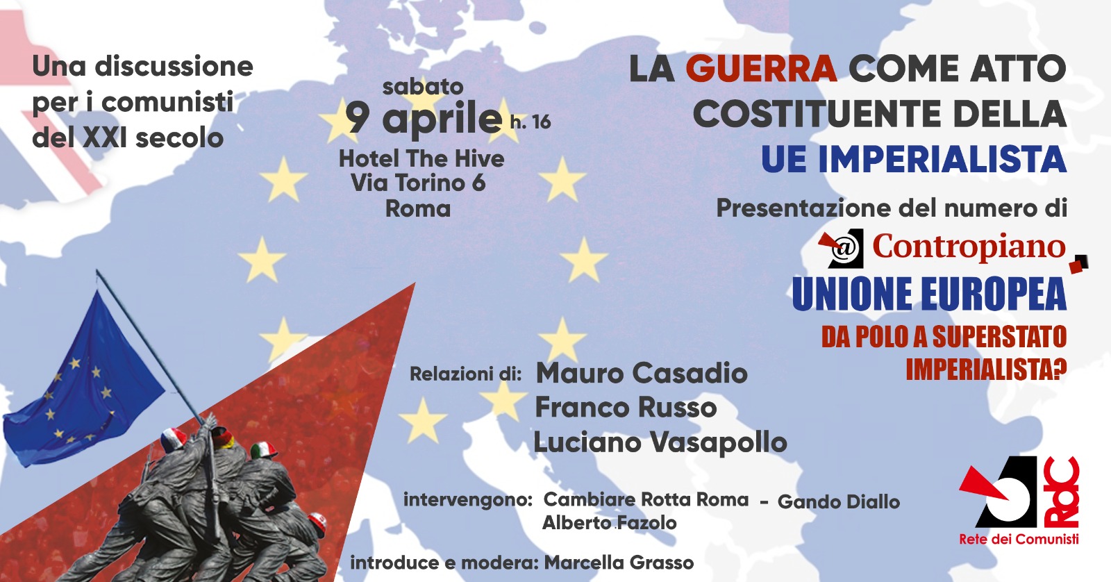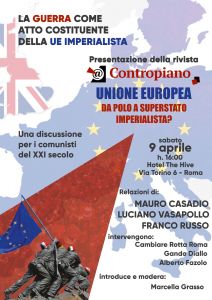Nel confronto emerso veniva rilevato come “l’ultimo miglio” della costruzione imperialista europea non si fosse ancora materializzato, in particolare per la debolezza dello strumento militare dell’Unione Europea, nonostante che la spinta in tal senso ci fosse già tutta, come è stato ben analizzato nella relazione al convegno fatta da Giovanni Russo Spena con il titolo “Unione Europea imperialista armata”.