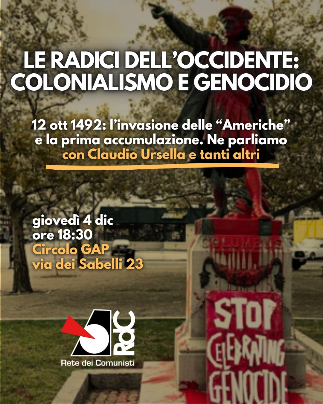 📌 Roma, giovedì 4 dicembre, ore 18:30, Circolo GAP (via dei Sabelli, 23)