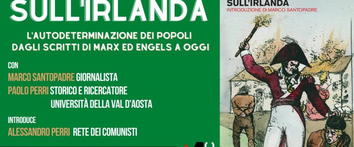 Degli scritti “Sull’Irlanda” e dell’attuale contesto irlandese parliamo il 16 marzo alle 18.30 a FricciCore, in via delle Acacie 14, con Marco Santopadre, giornalista, Paolo Perri, storico e ricercatore dell’Università della Val d’Aosta (in collegamento) e Alessandro Perri della Rete dei Comunisti.