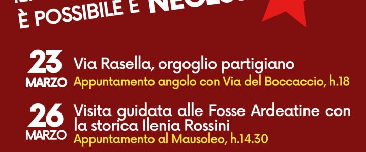 Secondo appuntamento il 26 marzo alle Fosse Ardeatine