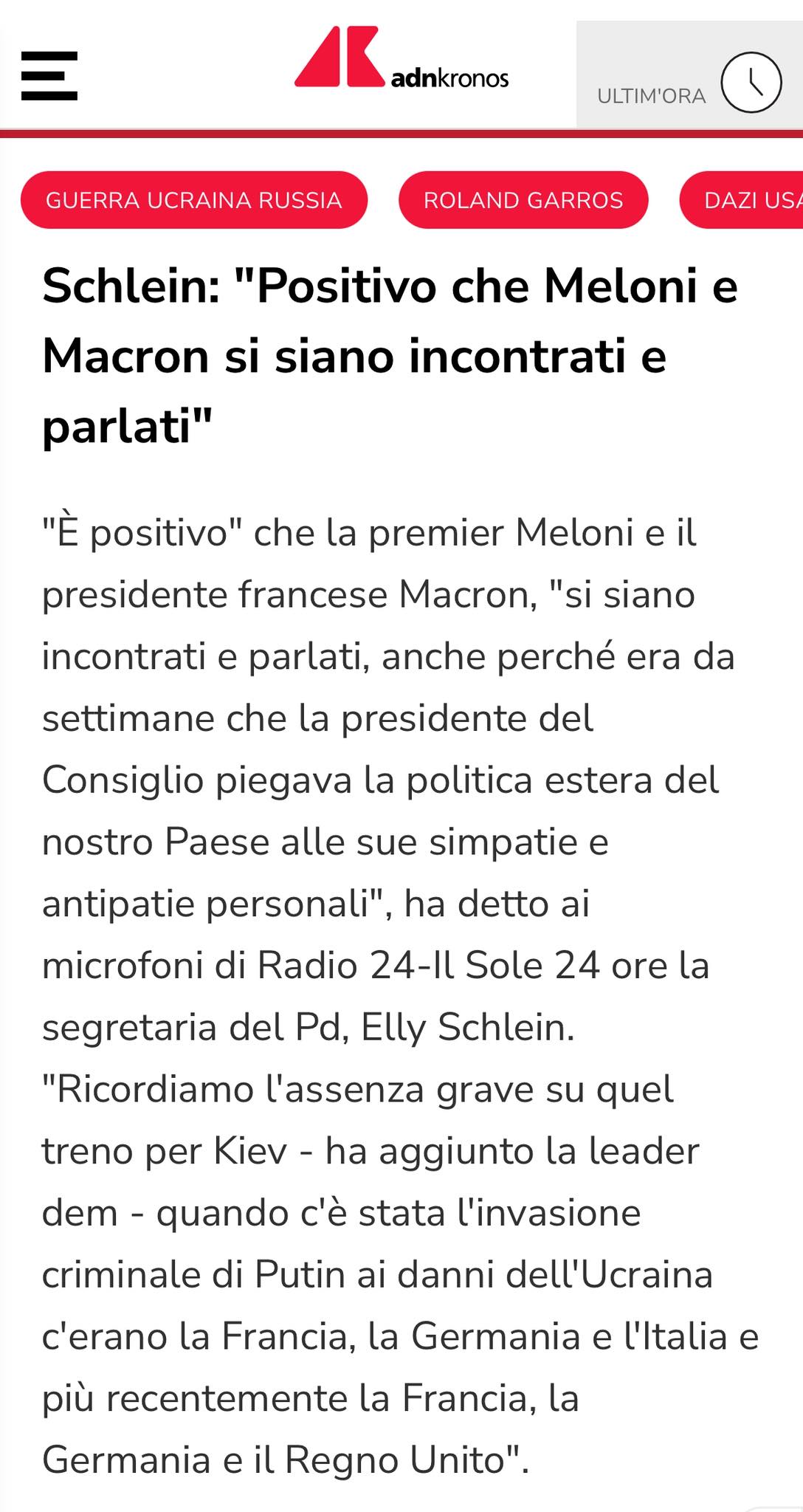 La segretaria del PD Schlein ha applaudito a Meloni e Macron che si sono incontrati.