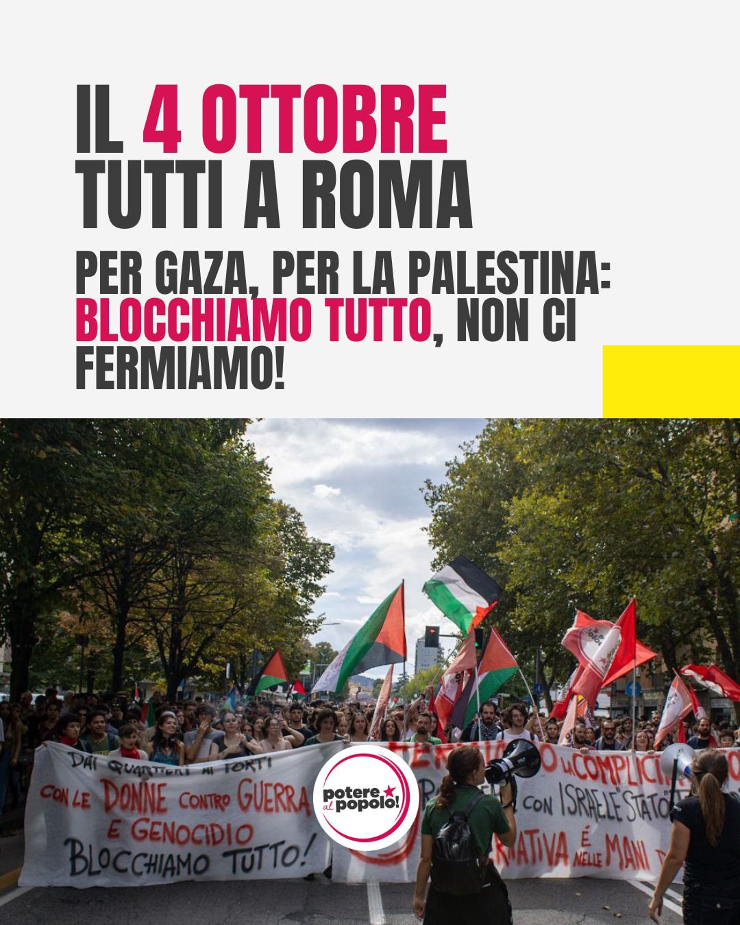 Prepariamoci a bloccare, di nuovo, tutto, se la Global Sumud Flotilla dovesse essere intercettata da Israele. Organizziamo la partecipazione alla grande manifestazione nazionale di Roma, il prossimo 4 ottobre.
