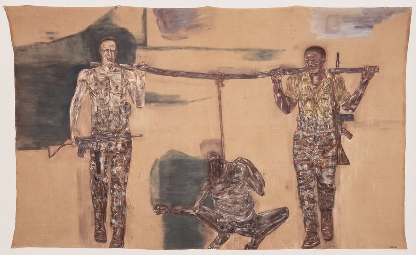 * da Facebook – Immagine: Leon Golub, “I mercenari”, 1985. I mercenari incarnano il volto violento e coercitivo dell’Occidente coloniale e imperiale, mentre le loro vittime rimandano alla sua parte rimossa: quella oscurità strutturale che convive con i suoi ideali di libertà e civiltà.