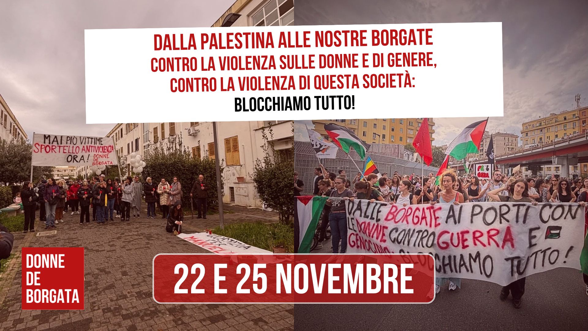Dalla Palestina alle nostre borgate, contro la violenza sulle donne e di genere, contro la violenza di questa società: blocchiamo tutto!