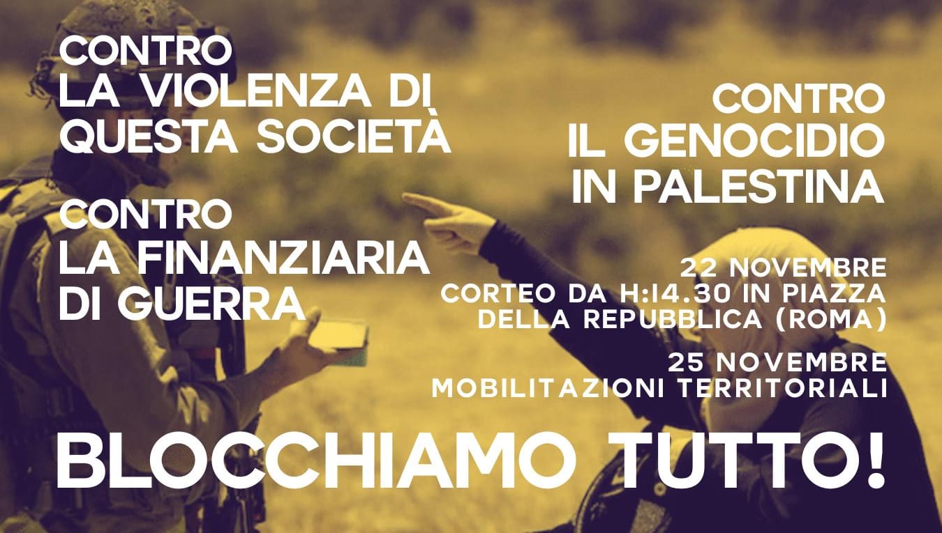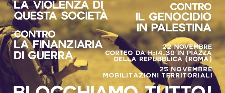 Per questo il 22 novembre (a Roma) e il 25 novembre (nei nostri territori) scenderemo in piazza contro la violenza di genere e la violenza di questa società e parteciperemo allo sciopero generale del 28 novembre e alla manifestazione nazionale del 29 novembre a Roma contro la finanziaria di guerra, contro il governo Meloni, per la Palestina libera: BLOCCHIAMO TUTTO!