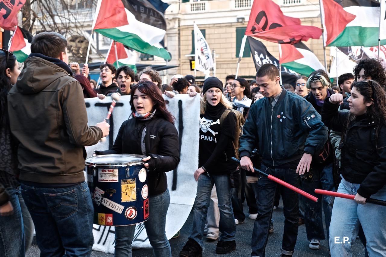 Perbacco… quanti giovani! Non siamo certo a una sceneggiata d’un sindacato di regime! Genova è sommersa davvero da una potente onda, fresca e combattiva e che scandisce: Noi la guerra non la vogliamo fare e un vaffanculo al governo Meloni.