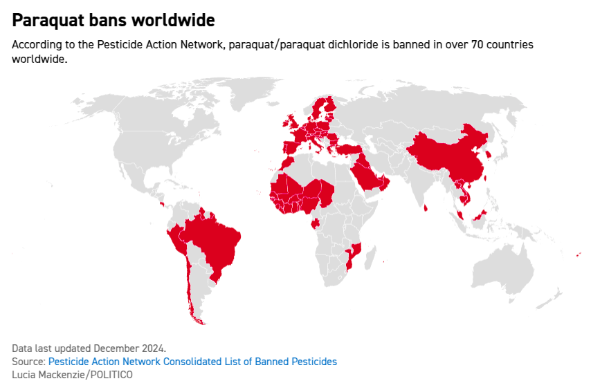 L’azienda ha dichiarato a POLITICO che i paragoni con l’MPTP sono stati ripetutamente contestati, citando una revisione australiana del 2024 che concludeva come il paraquat non agisca attraverso lo stesso meccanismo neurotossico. In una risposta scritta di oltre tre pagine, la società ha affermato che esistono prove consistenti che il paraquat non provochi effetti neurotossici attraverso le vie più rilevanti per l’esposizione umana: ingestione, contatto cutaneo o inalazione.