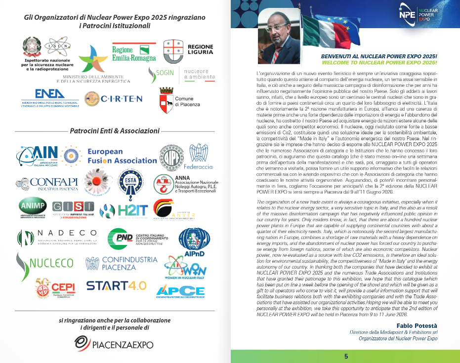 Organizzata da Mediapoint & Exhibitions, la manifestazione ha ricevuto il patrocinio di istituzioni come il Ministero dell’Ambiente e della Sicurezza Energetica, la Regione Emilia-Romagna e la Regione Liguria, ENEA e Sogin, quest’ultima responsabile del (mancato) smantellamento delle centrali nucleari italiane dismesse.