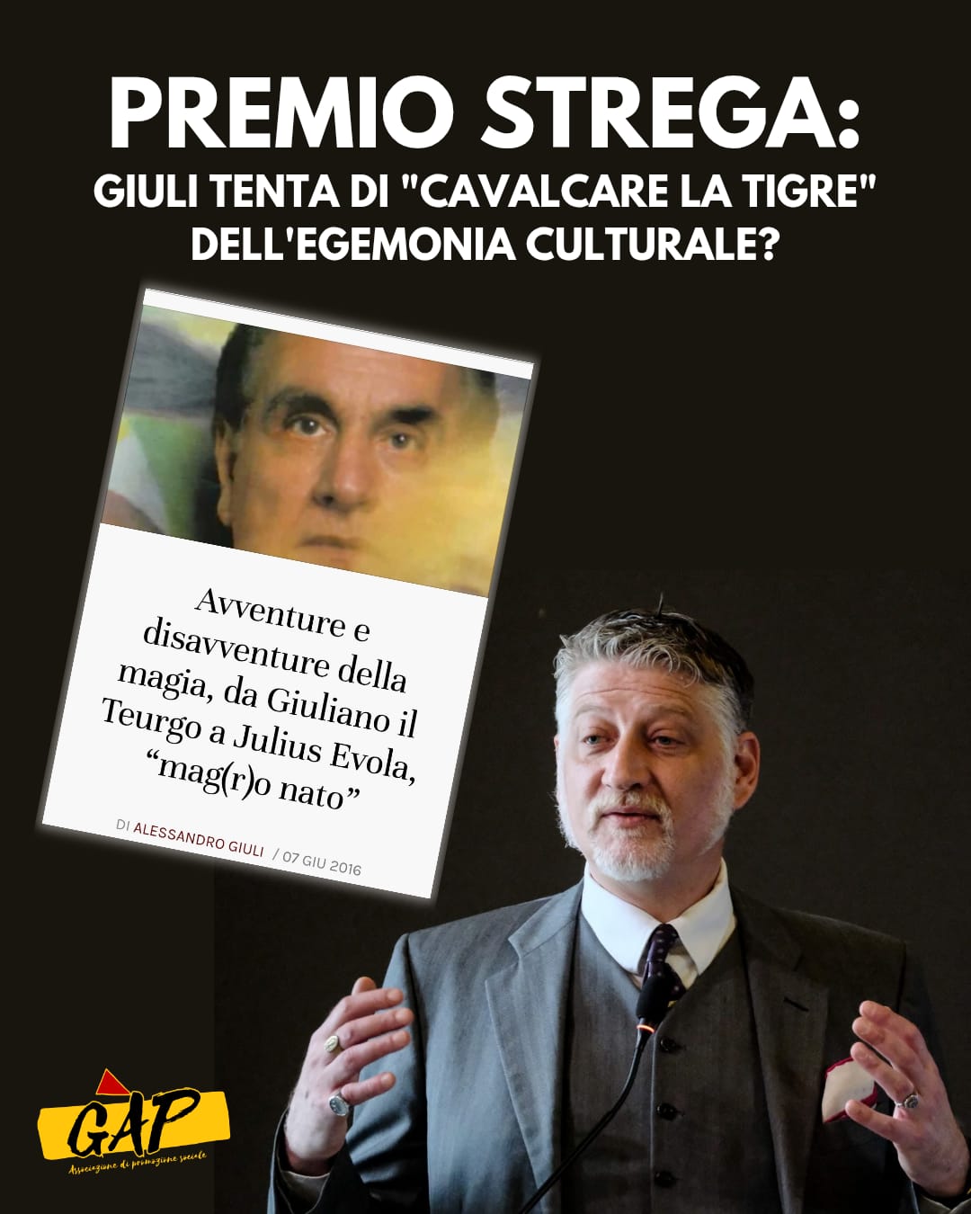 Le dichiarazioni di Giuli nei confronti del Premio Strega sono quindi una chiara presa di posizione nei confronti di un pensiero liberale che – soprattutto a causa del regredire di un punto di vista realmente progressista del centrosinistra – va sempre più a scemare nel nostro paese. Ma, allo stesso tempo, preparano il terreno per una società sempre più reazionaria, improntata sull’appiattimento culturale, devota alla guerra e allo sviluppo degli interessi di pochi, a qualunque costo.