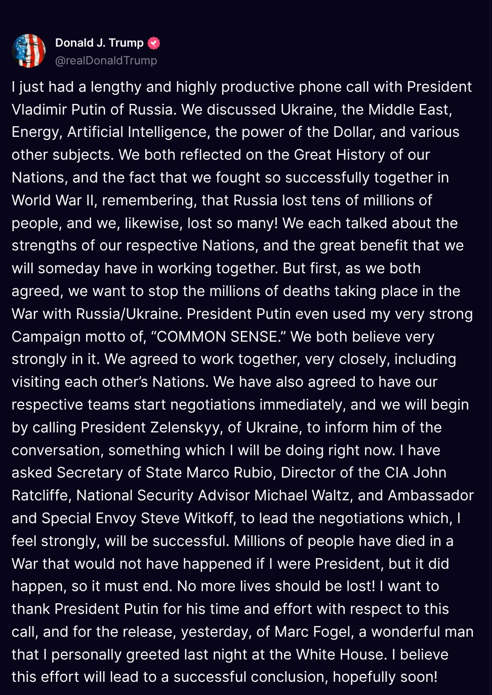 Svegliarsi una mattina e scoprire che il tuo bel mondo non sta più in piedi. Sembra proprio questa la situazione del’Unione Europea subito dopo l’ennesimo annuncio di Donal Trump, secondo cui – dopo aver parlato al telefono con Vladimir Putin – i colloqui con il leader russo per porre fine alla guerra in Ucraina inizieranno “immediatamente” e saranno ovviamente coronati da un grande successo.