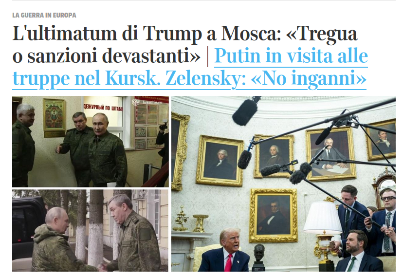 Anche i meno esperti capiscono che un cessate il fuoco è interesse soprattutto dello schieramento militarmente in difficoltà sul terreno, e le notizie che vengono dal Kursk – regione russa parzialmente occupata dall’esercito di Kiev l’estate scorsa – parlano di una ritirata veloce e definitiva, mentre su altri fronti l’Armata avanza a ritmo costante.