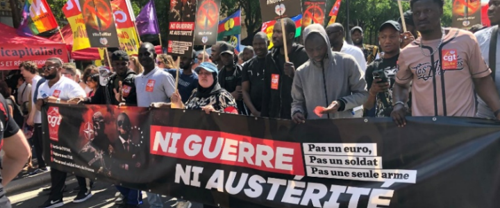 La piattaforma di rivendicazioni comune della CGT metteva in primo piano la questione della guerra e delle pensioni, ma anche l’aumento salariale e la lotta contro l’estrema destra, internamente e esternamente, con riferimenti alle politiche economiche trumpiane, in nome di solidarietà e cooperazione tra lavoratori a livello internazionale.