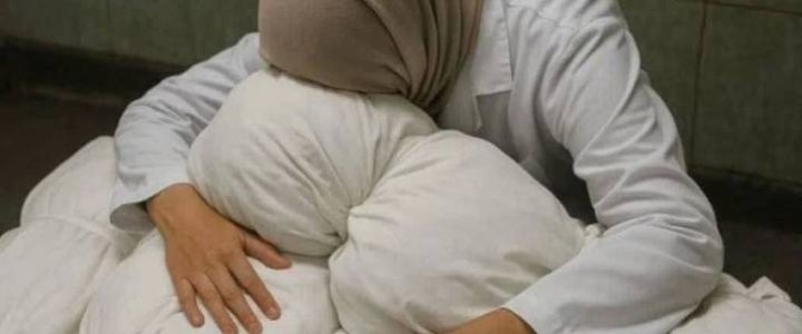 Ora è sola: la sua famiglia numerosa e piena d’amore è stata annientata da un bombardamento che ha distrutto la loro casa e il loro futuro. Mentre era di turno al Nasser Medical Complex, grande ospedale nel sud di Gaza, ha accolto i corpi quasi irriconoscibili di otto figli, morti a causa di un bombardamento, e suo marito gravemente ferito.
