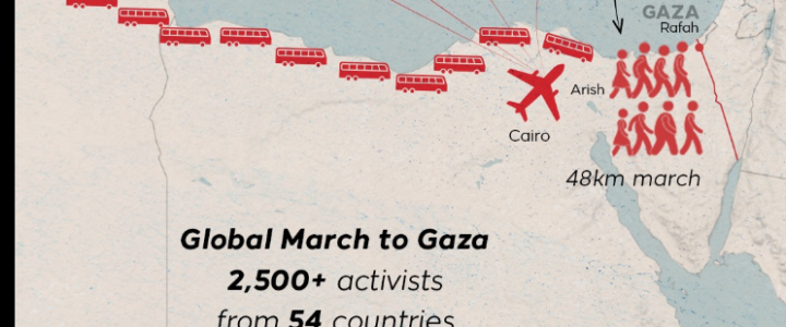 Oltre 7.000 attivisti provenienti da 54 paesi del mondo si stanno concentrando in Egitto nel quadro della “Marcia Globale verso Gaza”, per raggiungere il valico di Rafah e chiedere la fine dell’assedio e del genocidio del popolo palestinese.