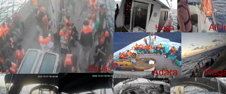 Ore 5. Le prime imbarcazioni intercettate: “Alcune imbarcazioni non identificate si sono avvicinate a diverse navi della Flottiglia, alcune delle quali con le luci spente. I partecipanti hanno applicato i protocolli di sicurezza in preparazione di un’intercettazione. Le imbarcazioni hanno ora lasciato la Flottiglia”.