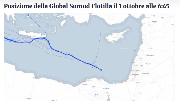 Sarebbero i gesti umanitari, dunque, a “impedire la pace“, non l’azione criminale di un governo genocida e l’appoggio concreto di tutto l’Occidente euro-atlantico. Riassumendo: il genocidio è “pace”, e la Flotilla sarebbe un attentato alla “pace”. Giudicate voi…