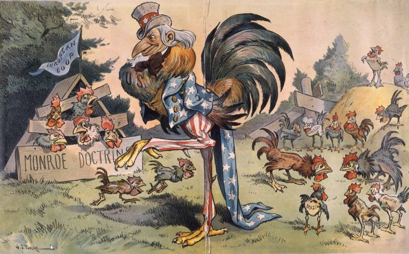 La prima svolta imperialista della Dottrina Monroe si ha agli inizi del ‘900, con la crescita della potenza americana: la dottrina si trasforma da isolazionista a espansionista, legittimando interventi economici e militari statunitensi in America Latina, con ad esempio il “Corollario Roosevelt”: un’aggiunta alla Dottrina Monroe, enunciata dal Presidente Theodore Roosevelt nel 1904, che autorizzava gli Stati Uniti a intervenire come “polizia internazionale” negli affari interni dei paesi latinoamericani per correggere “irregolarità croniche“, con la scusa di prevenire l’intervento europeo, trasformando la dottrina da un’esclusione delle potenze europee a una giustificazione per l’intervento statunitense, sotto la politica del “Big Stick” e del Sudamerica come “giardino di casa” degli USA.