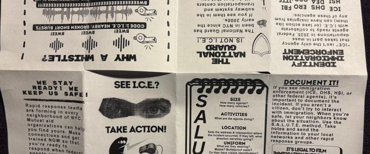 Come me anche gli altri passanti ritirano entusiasti il kit anti ICE. Mi chiedo se avremo mai l’occasione e la freddezza di usarlo. Non lo so. Non nascondo che mi piacerebbe assistere alla scena di un gruppo di cittadini che armati di fischietti riescono a gabbare gli energumeni dell’ICE e proteggere i loro vicini di casa, di negozio, di strada.