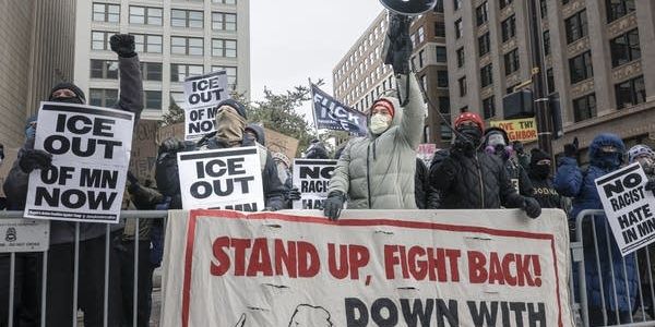 Ma, dicevamo, l’America sta diventando un laboratorio interessante. La caduta dei veli retorici e la brutalità della repressione hanno fatto nascere forme di resistenza impensate, che raccolgono le energie di milioni di persone che magari non votano, ma non ci stanno a restare indifferenti. Nelle manifestazioni e nei presidi contro l’ICE e Trump, infatti, fanno sempre più spesso capolino – o qualcosa di più – anche temi “classicamente sociali”.