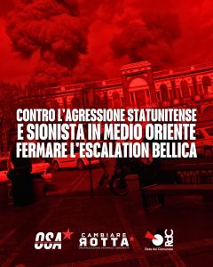 Bisogna denunciare più che mai la rinnovata aggressività statunitense e sionista, nonché le complicità occidentale di cui gode a tutti i livelli. É necessario più che mai che “le armi tacciano” e che questa ulteriore escalation bellica rientri, continuando a recidere quei legami che connettono il nostro paese con il terrorismo sionista e ai banditi statunitensi, che non indugiano un attimo di fronte alla possibilità di portare il mondo sull’orlo di un conflitto bellico mondiale per mantenere il proprio dominio nell’area e la propria rendita di potere mondiale.