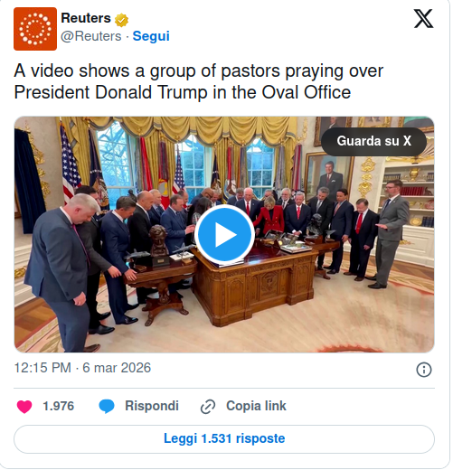 “Trump dice cose inutili, recentemente ha detto che vuole nominare lui la prossima guida suprema dell’Iran, da Mar-a-Lago. Ma Trump stesso è ormai il capo di una nuova religione. Una religione sotto l’egida del sionismo, che mette insieme evangelici, pentecostali, battisti, i miliardari del Golfo… Una religione che vuole imporre a tutti noi.