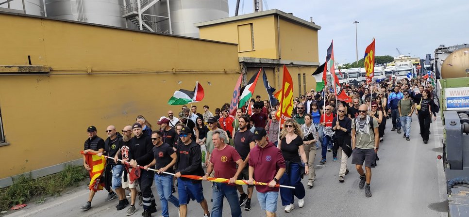 A Genova si è poi mosso un corteo determinato dentro il porto, per ribadire il blocco al traffico di armi e la solidarietà militante al popolo palestinese.