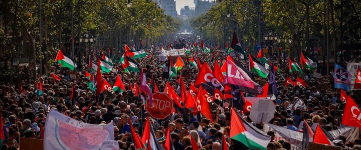 In Spagna come in Italia, i sindacati hanno rotto gli indugi e ieri, mercoledi, hanno convocato uno sciopero generale con al centro la denuncia del genocidio del popolo palestinese.