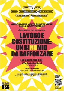 In vista della manifestazione del 14 marzo per il NO sociale al Referendum sulla giustizia, l’USB Pubblico Impiego ha indetto un’assemblea per le Funzioni centrali che si svolgerà il 12 marzo dalle ore 10.30 alle ore 14.30.