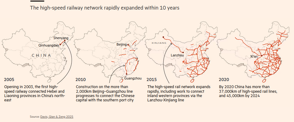 La rete dell’alta velocità si estende per 45.000 km – cinque volte la dimensione di quella dell’UE – e si prevede che raggiungerà i 60.000 km entro il 2030.