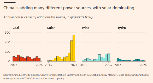 Eppure, nello stesso anno, la Cina ha avviato la costruzione del maggior numero di centrali a carbone dell’ultimo decennio, secondo Global Energy Monitor, e continua a finanziare progetti a carbone all’estero nonostante l’impegno del 2021 del presidente Xi a fermarli.