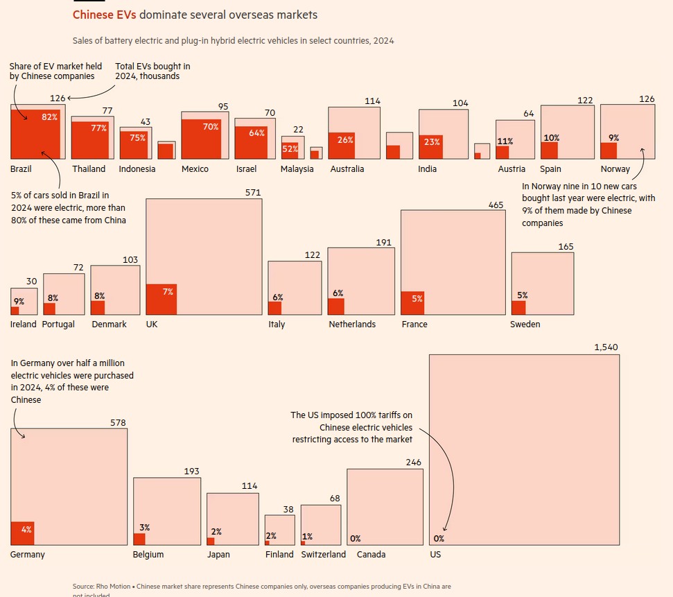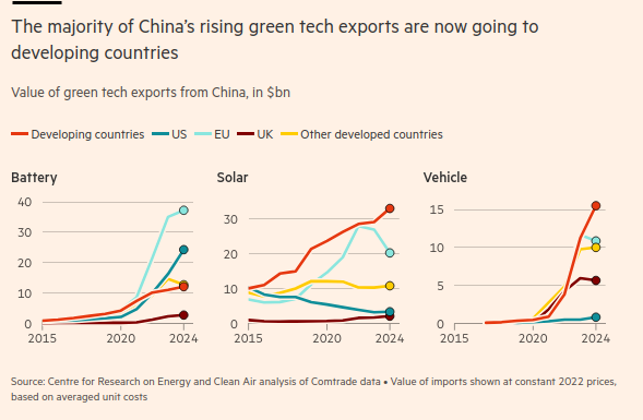 Secondo gli annunci aziendali e i bilanci raccolti da Climate Energy Finance, un gruppo di ricerca con sede a Sydney, dal 2023 le aziende cinesi hanno impegnato 156 miliardi di dollari in investimenti diretti all’estero, distribuiti in oltre 200 operazioni nel settore delle tecnologie pulite. Questo sforzo sta espandendo l’influenza politica ed economica di Pechino a livello globale, proprio mentre l’amministrazione Trump persegue una netta disconnessione dalle catene di approvvigionamento cinesi, sconvolgendo il commercio mondiale.