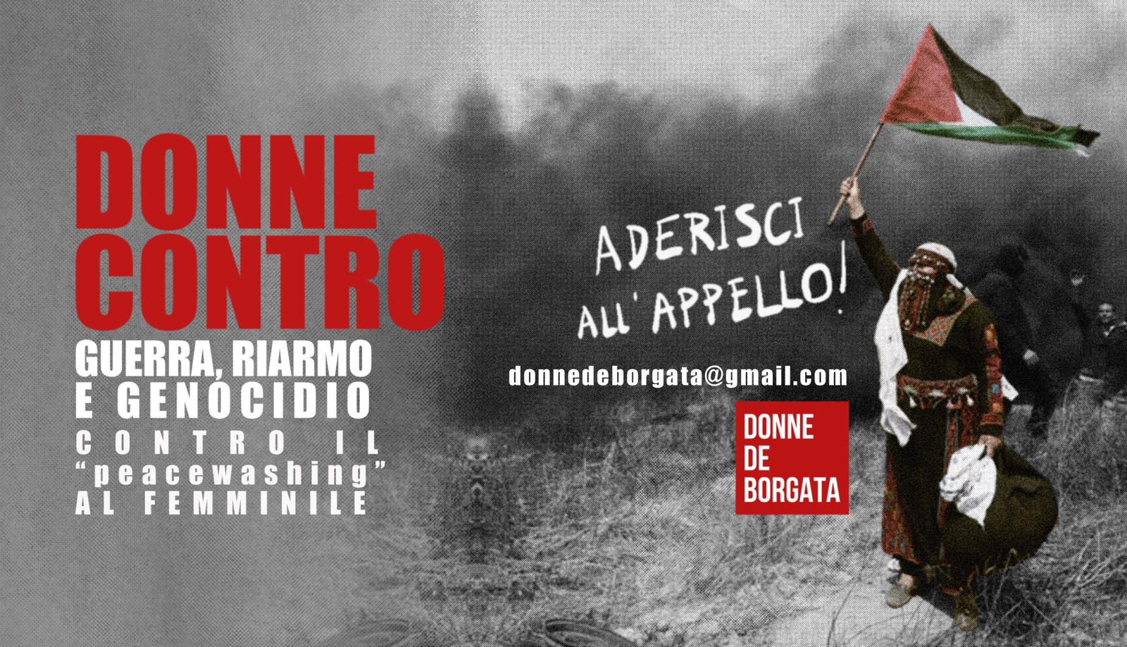 Grazie alle Donne De Borgata. Aderisco all’appello. contro il genocidio, la crescente militarizzazione, la violenza di genere e ogni forma di discriminazione. per l’autodeterminazione dei popoli e delle soggettività