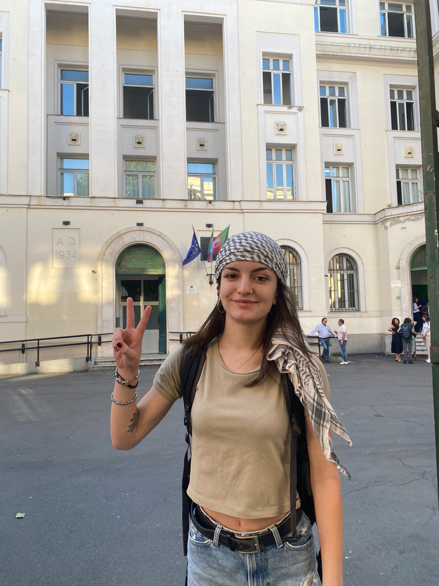 A scuola ci consigliano di presentarci agli esami in abiti “dignitosi”: “pantalone lungo d’obbligo e magari anche una camicetta per l’orale”. Bene, per noi non c’è nulla di piu dignitoso che portare sulle spalle o attorno al collo il simbolo della dignità e della resistenza del popolo palestinese, a maggior ragione dopo il sequestro della nave Freedom Flottilla che portava aiuti alimentari.