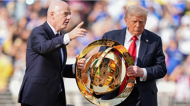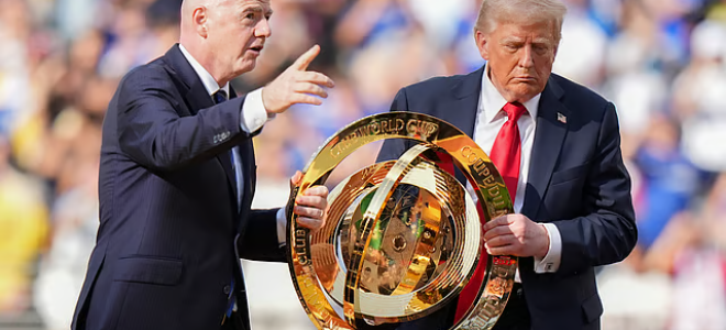 Infantino, da tempo alleato trasversale di monarchie del Golfo, oligarchie dell’est e poteri transnazionali, ha trovato in Trump il partner simbolico ideale per chiudere il cerchio. Il trofeo consegnato dal presidente americano è stato più che un semplice gesto cerimoniale: è diventato un atto di normalizzazione.