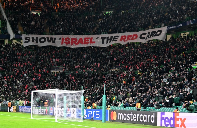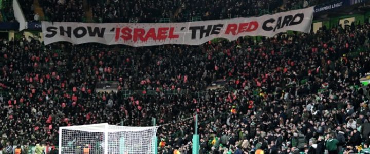 in subordine si potrebbero preparare magliette con la bandiera della palestina su entrambe le parti da far indossare ai giocatori e ai tifosi, riempire lo stadio di bandiere palestinesi e vietare quelle israeliane