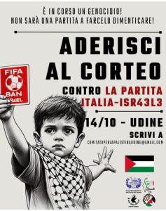 Il 14 ottobre si giocherà nuovamente la partita della vergogna. La FIGC cerca nuovamente di mascherare la sua complicità, questa volta dicendo di voler devolvere gli incassi ad una ONG che operi a Gaza.