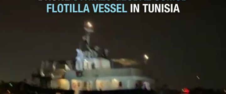 Le immagini di un video diffuso dagli attivisti della Gsf mostrano il momento esatto in cui l’ordigno viene sganciato e si sente l’esplosione. Le autorità tunisine minimizzano l’accaduto e i tutti i mass media della propaganda israeliana e filo-israeliana si accodano a questa versione. “Secondo i primi accertamenti, si è verificato un incendio nei giubbotti di salvataggio”, ha detto all’Afp Houcem Eddine Jebabli, portavoce della Guardia Nazionale, sottolineando che “non è stato rilevato nessun drone”. Peccato che il video dimostri esattamente il contrario.